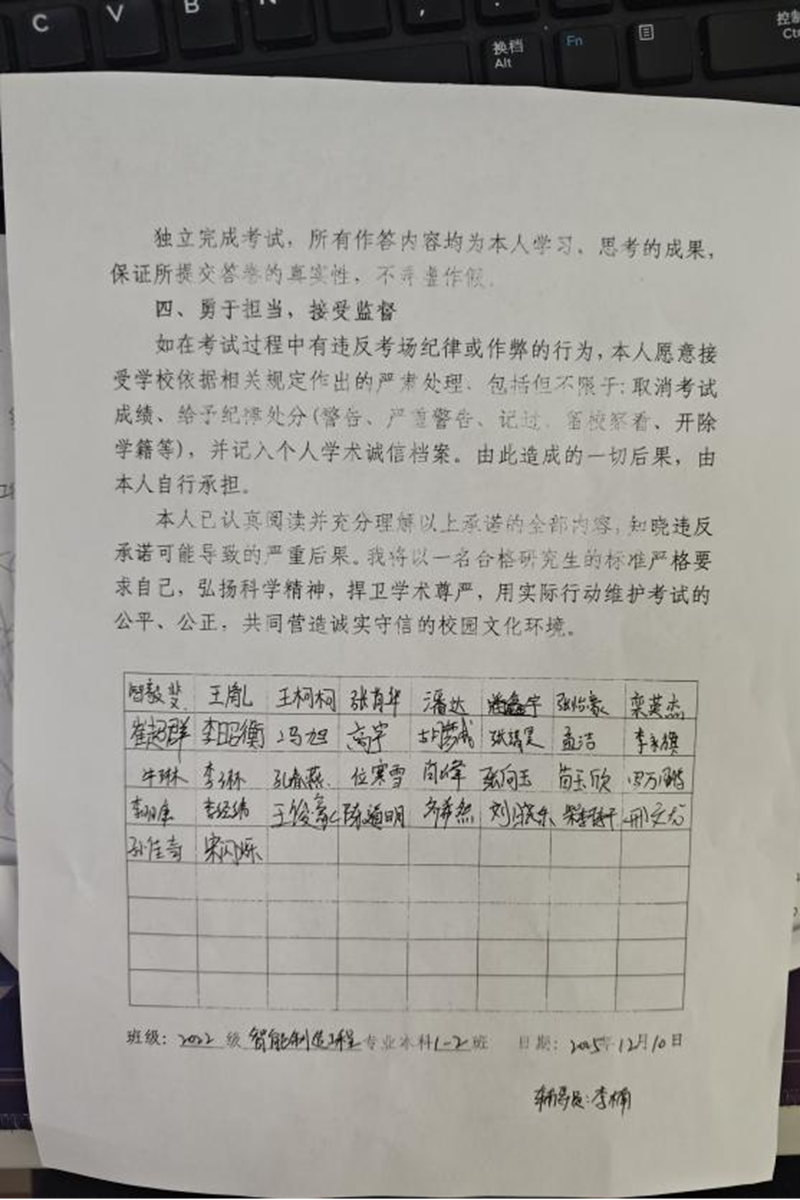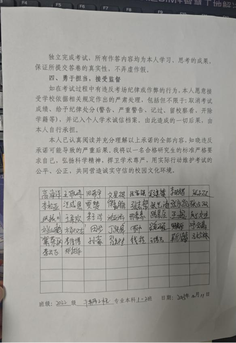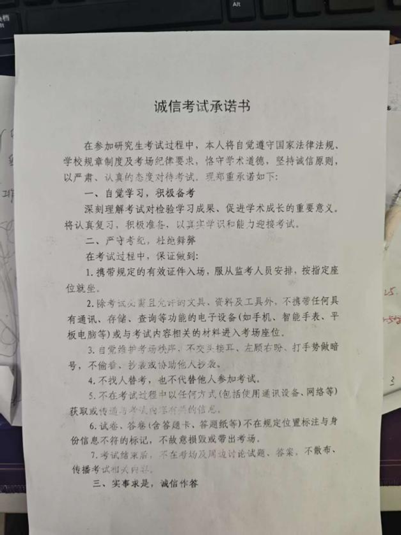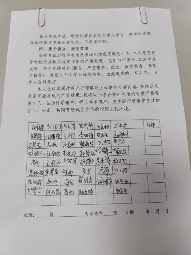 各班级在活动中统一组织签订《考研诚信考试承诺书》,同学们郑重承诺自觉维护考试公平公正,以真实水平接受选拔。